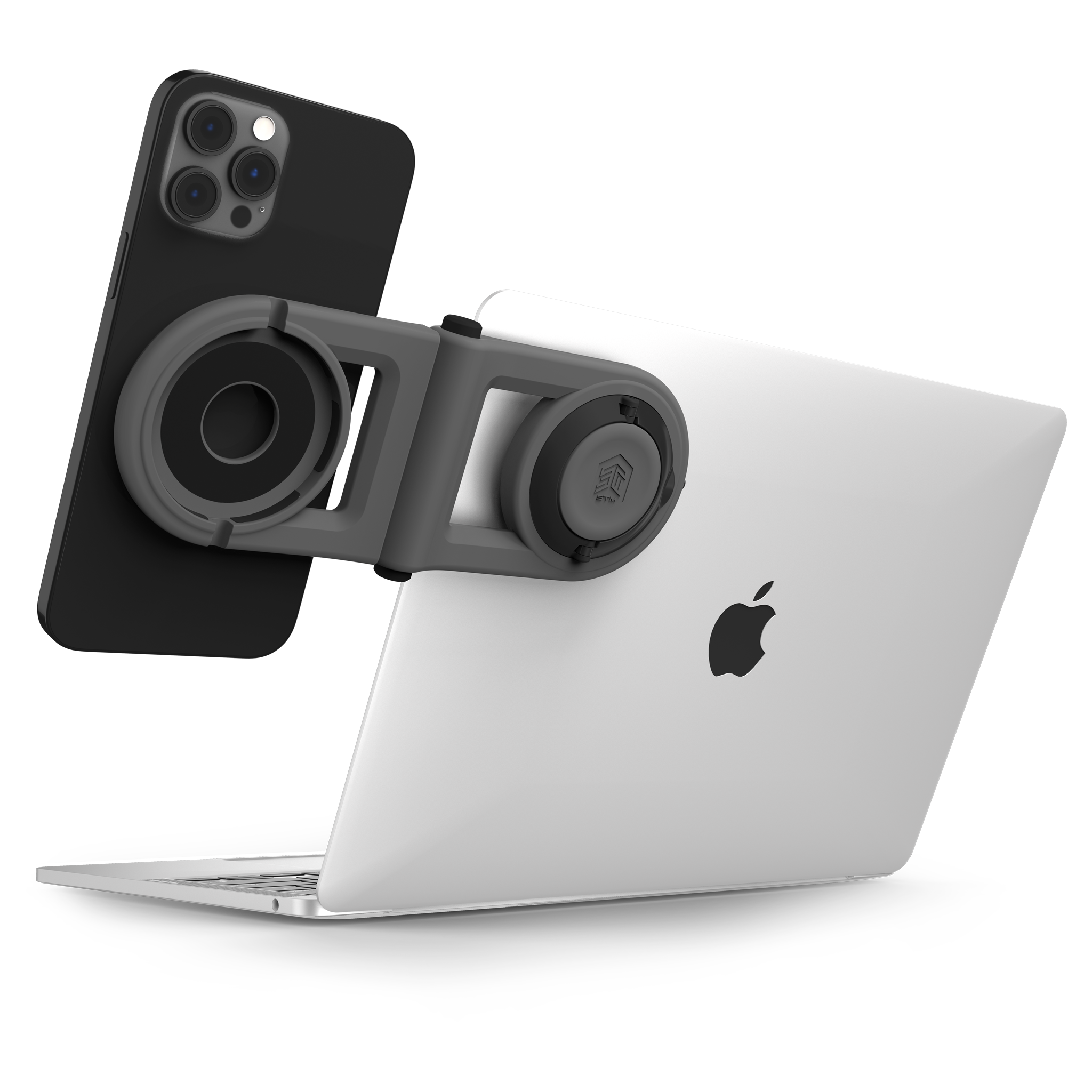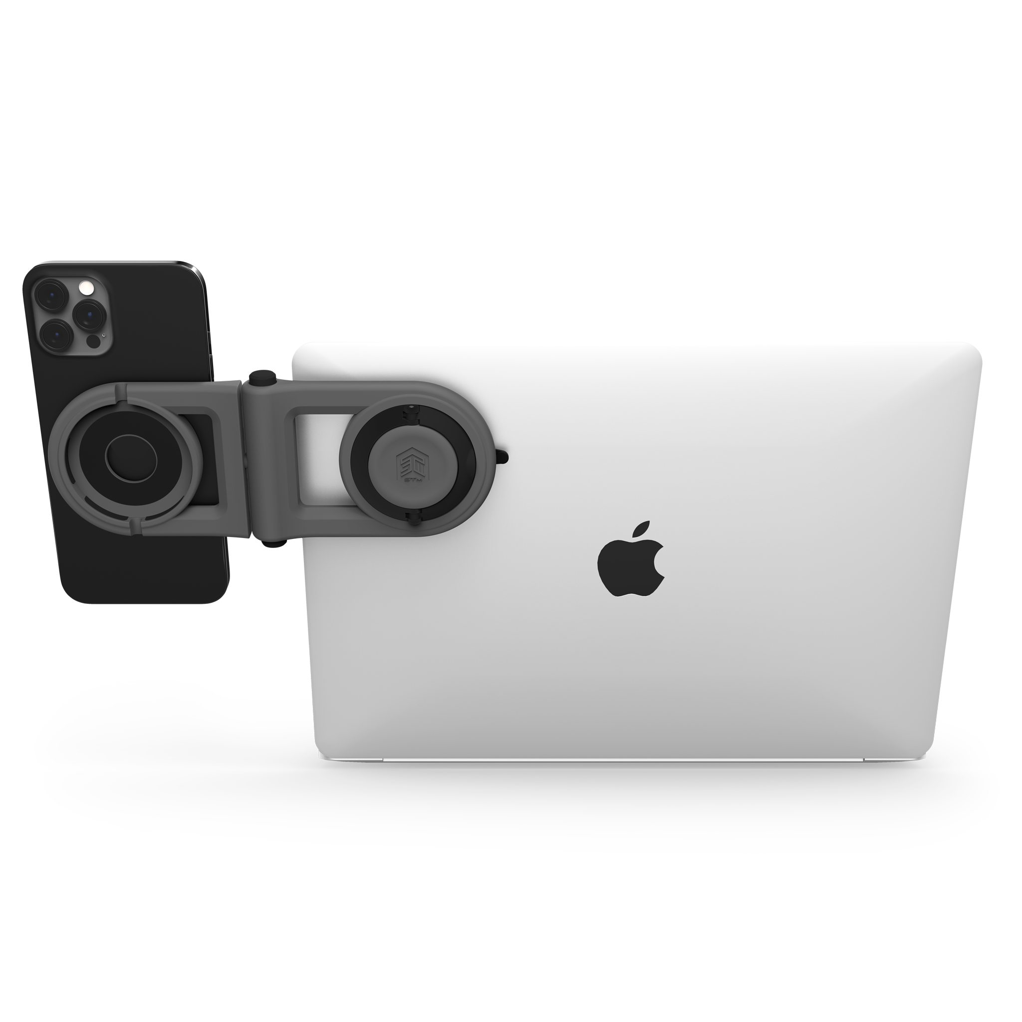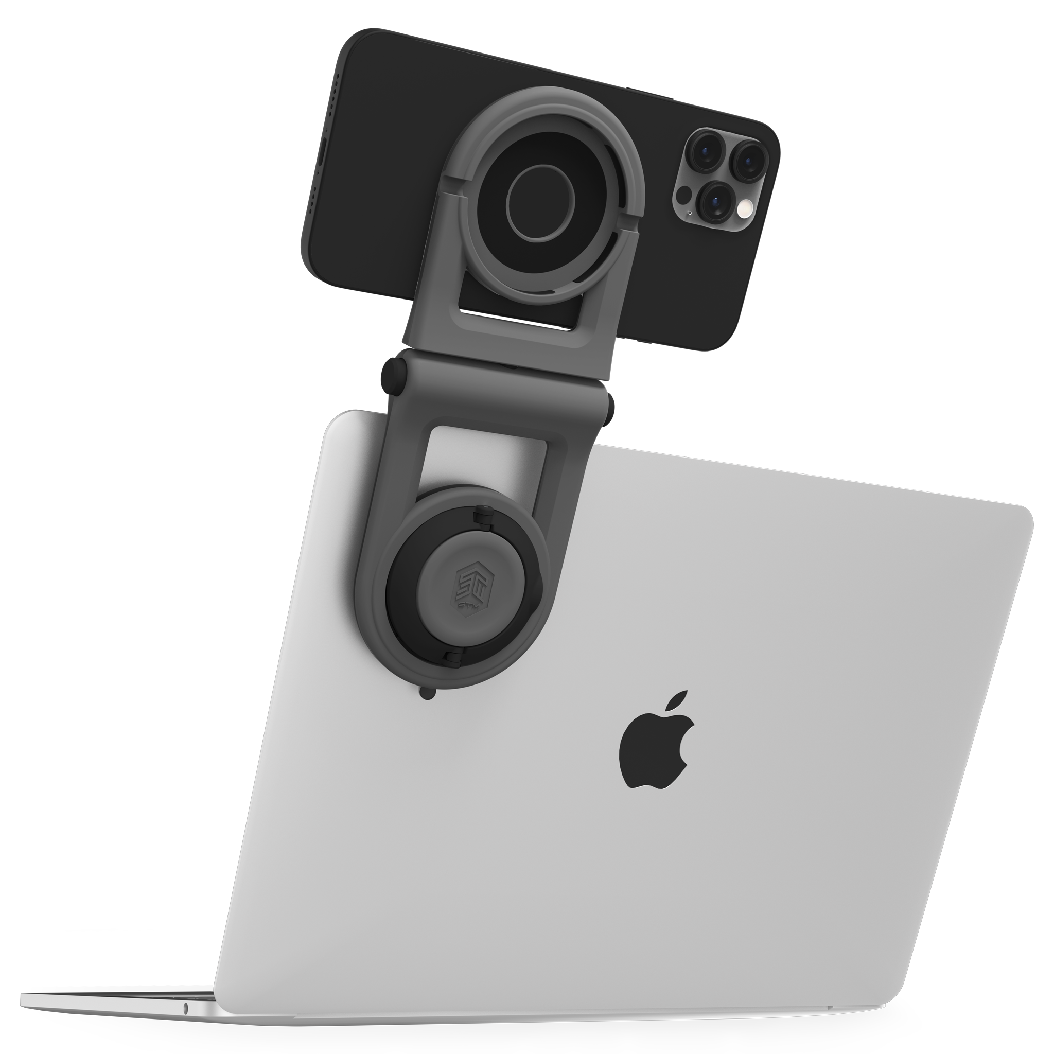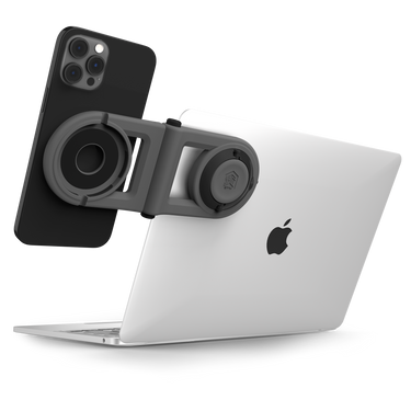 Working with multiple devices is a lot easier when they sit next to each other, and that’s where the MagArm really carries the load. The MagArm is a MagSafe-enabled phone mount that easily attaches to the back of your laptop screen, placing your phone in the same viewing angle as your laptop. The swivel hinge provides the perfect viewing angle, keeping your phone up and out of the way of your busy desktop, even allowing you to charge your phone while suspended above the clutter.