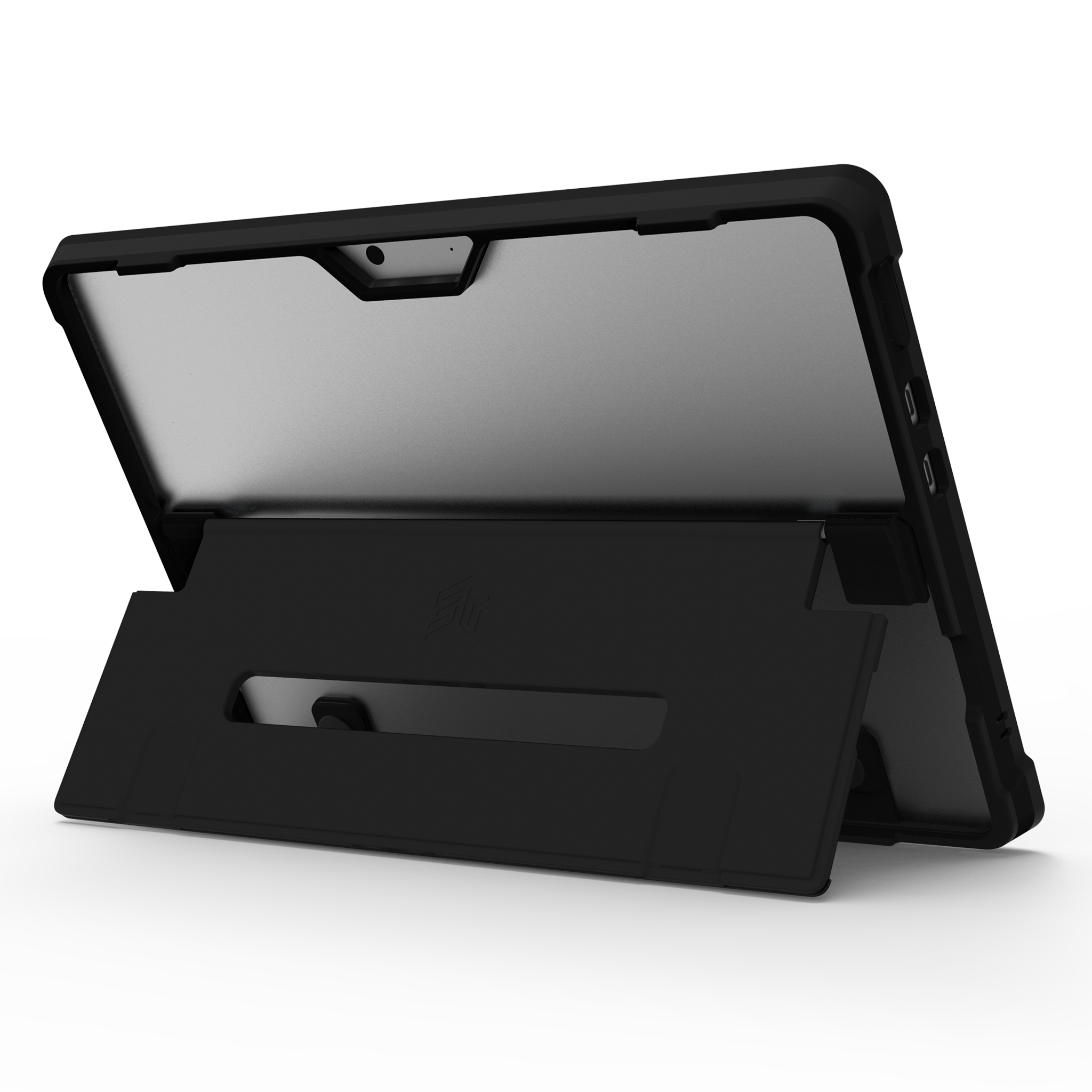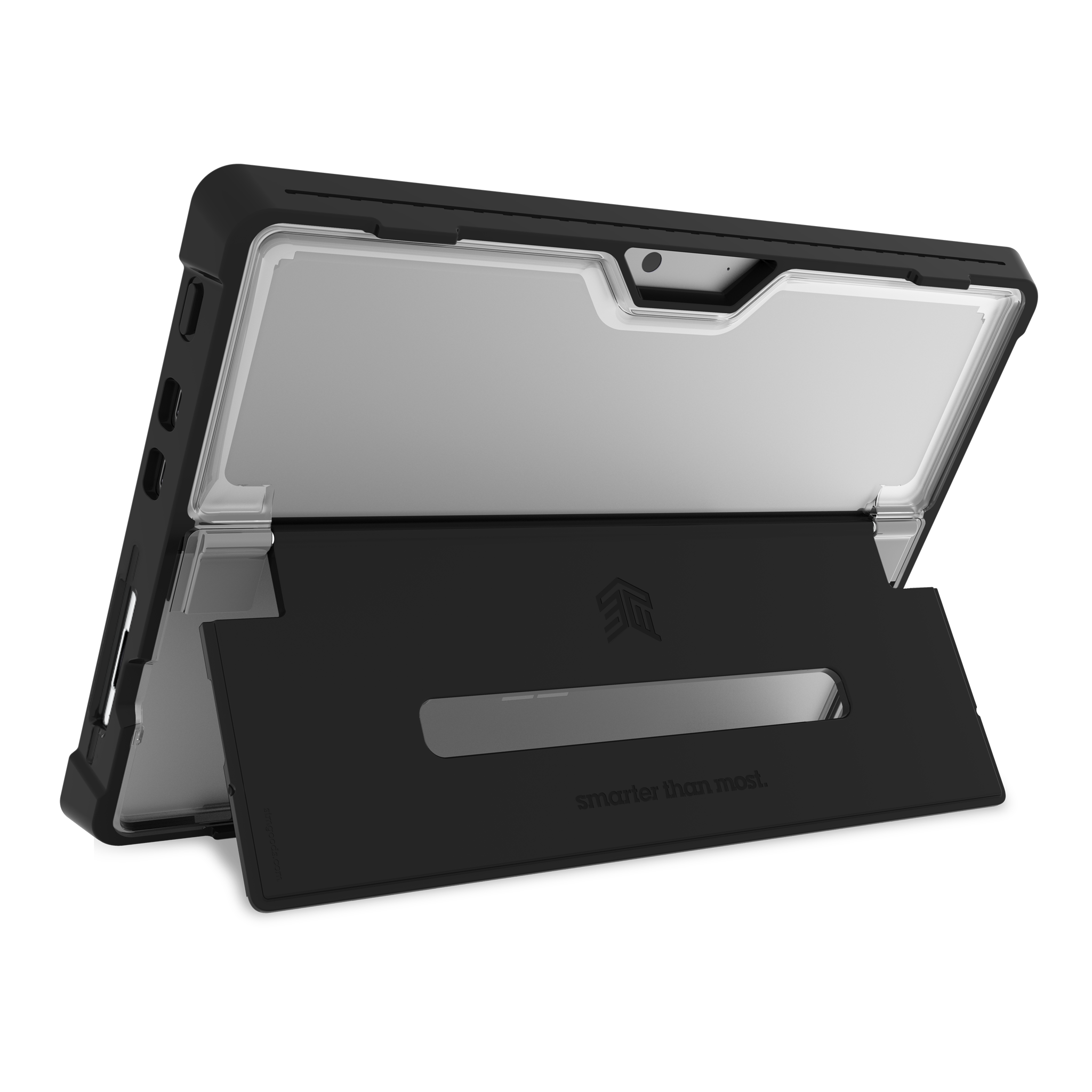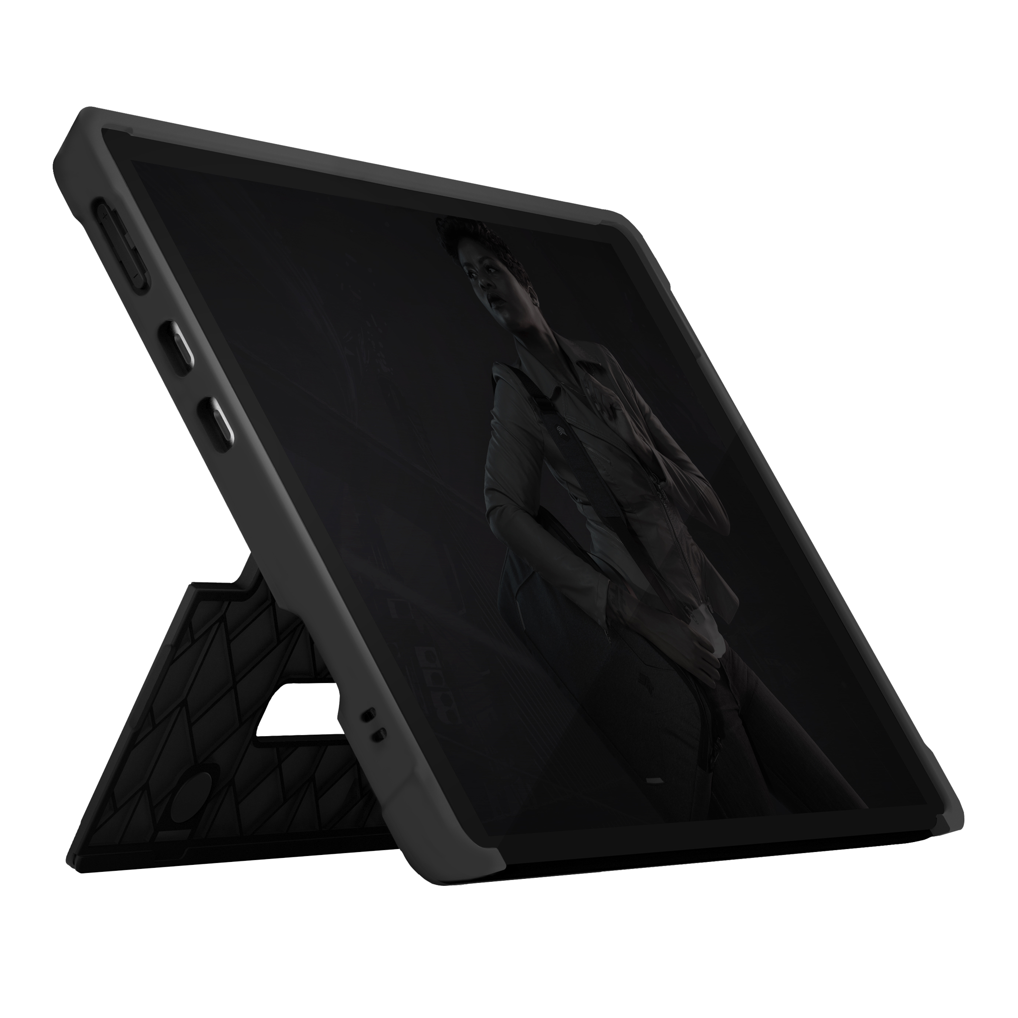 The Dux Shell is a sleek and rugged case designed to fit and protect the Surface Pro X, complement the Type Cover and Surface Pen or Classroom Pen 2. Our unique, transparent back panel allows the pristine beauty of your device to shine through. Slim and lightweight, yet super protective, with the Type Cover installed the Dux Shell case has been tested to meet or exceed U.S. Department of Defense 810H drop tests standards.