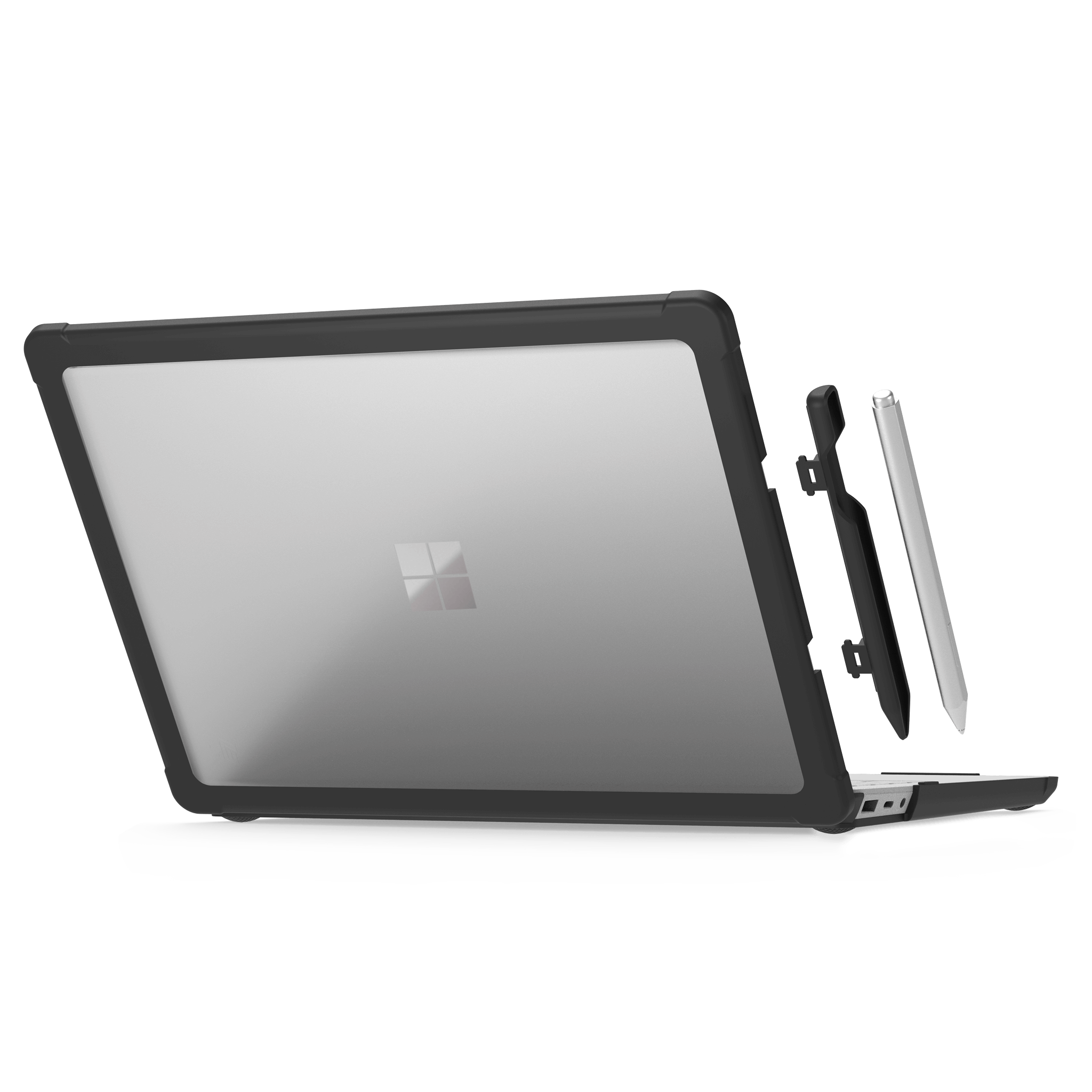 The dux case is a sleek and rugged case designed to work with the Surface Pen while protecting your new Microsoft Surface Laptop. Unique, transparent back panel allows your pristine device to shine through. Slim and lightweight, yet super protective.