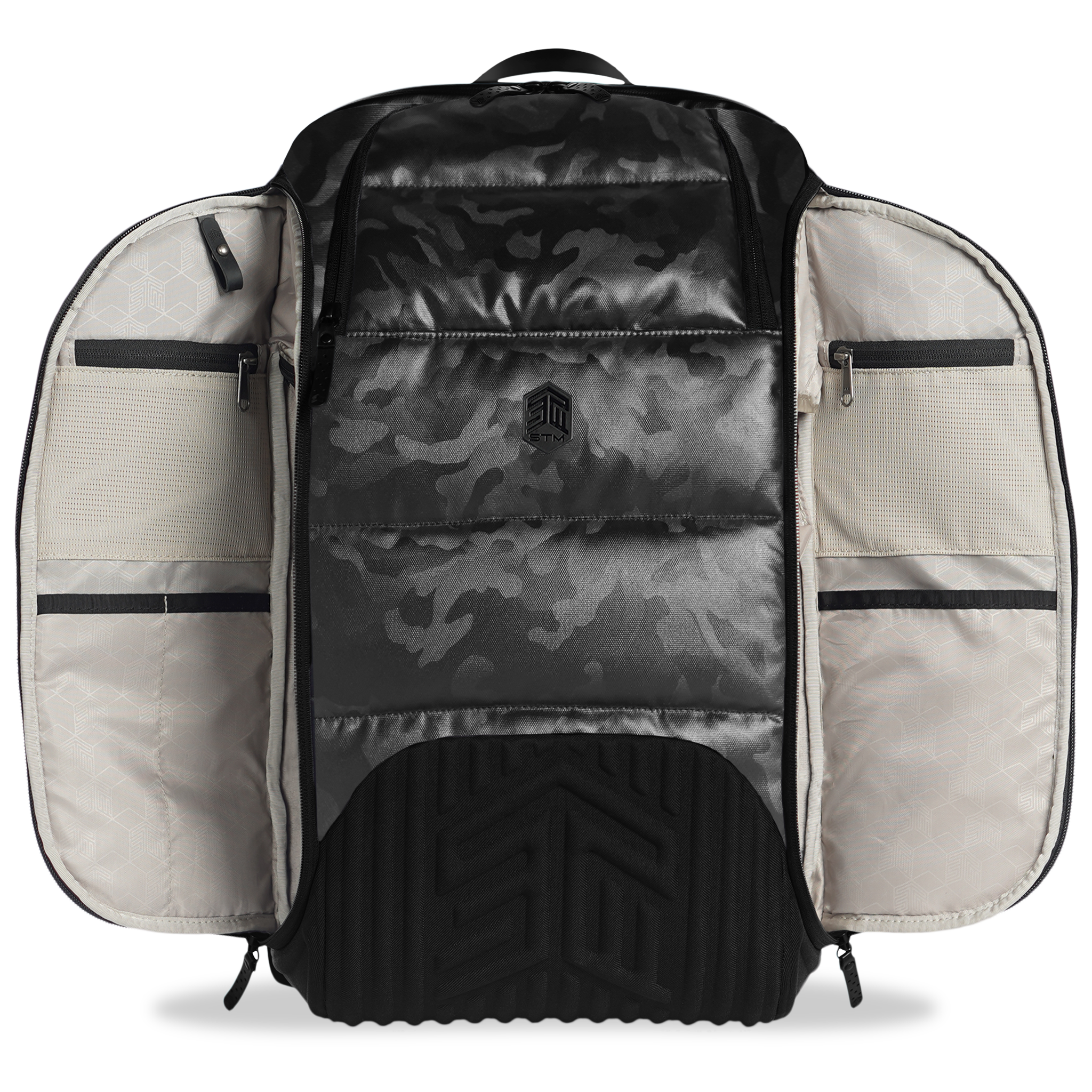 » ComfortCarry™ ergonomic dual-foam shoulder straps plus molded EVA foam back panel with cooling airflow channels for maximum comfort